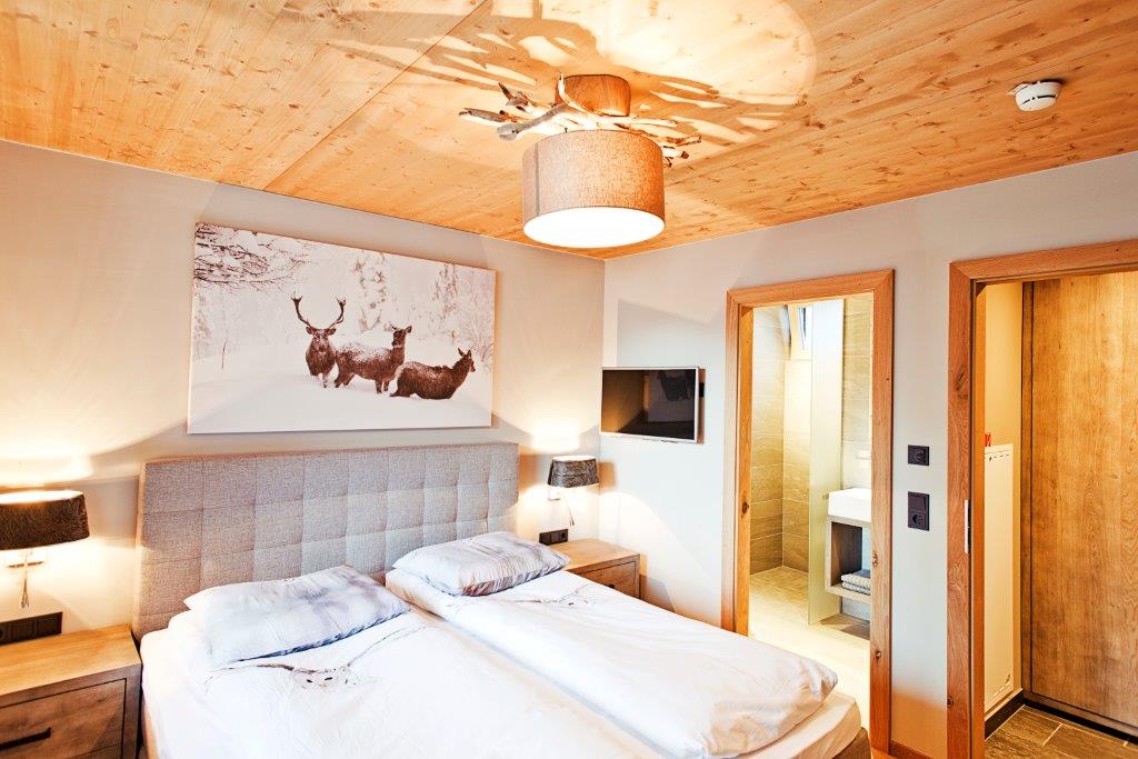 Three bedrooms featuring a double bed and a television; one of which has an en-suite bathroom.